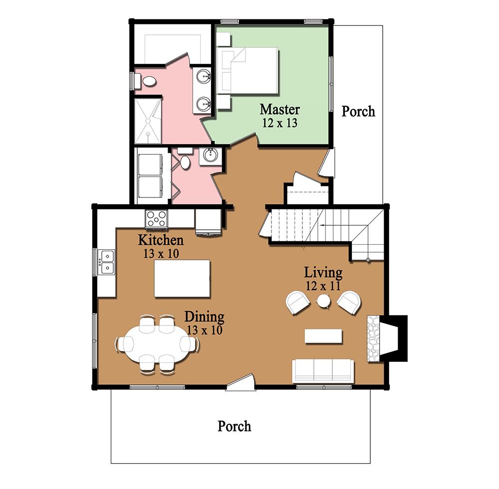 Ana seviye: 1.080 feet kare, 1 yatak odası, 1.5 banyo